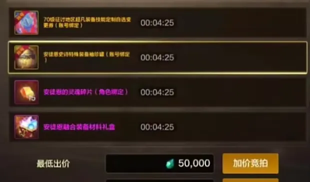 史诗罐子不管是防具、首饰还是特殊装备,起拍价都定在5万泰拉,上限10万泰拉。特性词条装备罐子与词条变更券,规则和罐子保持一致,同样是5万起拍、10万封顶。五行光环的门槛稍高,15万起拍,最高可以拍到30万泰拉。