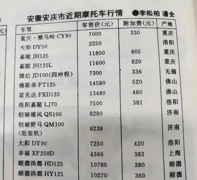 90年代摩托车价格单,看完才知道有多贵.