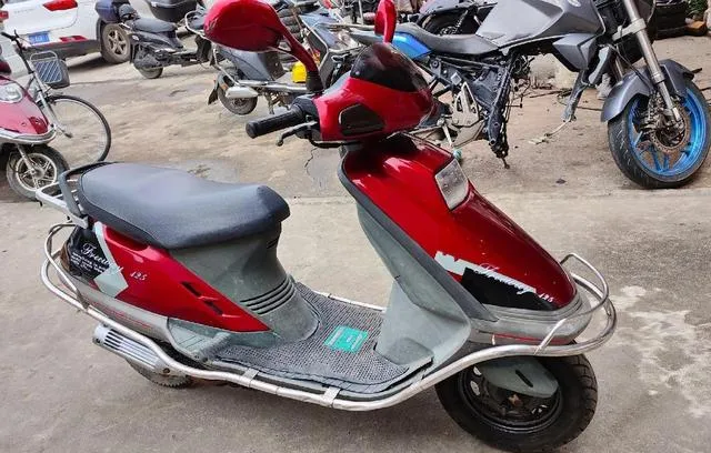 这个全包外壳叫三阳RS,整流罩一体到油箱,侧面贴着RS字样,坐垫又窄又长,骑姿一趴就有点赛车味儿,表盘上两只大圆眼,晚上一亮很精神,表叔那年真咬牙买了台,12800拿下还是讲价半天,他说年轻嘛要点面子,后来孩子上学换了小轿车,这车就收院里,偶尔发动一次,声音还挺正.