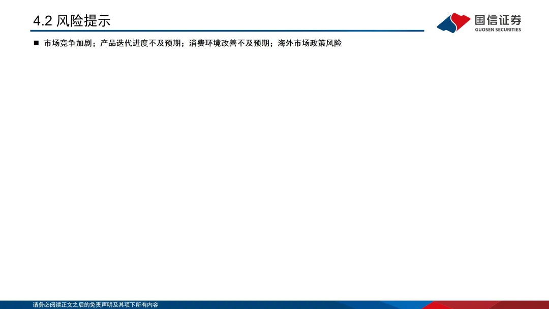 国信证券对本公众号所载资料的准确性、可靠性、时效性及完整性不作任何明示或暗示的保证。本公众号中资料、意见等仅代表来源证券研究报告发布当日的判断,相关研究观点可依据国信证券后续发布的证券研究报告在不发布通知的情形下作出更改。国信证券的销售人员、交易人员以及其他专业人士可能会依据不同假设和标准、采用不同的分析方法而口头或书面发表与本公众号中资料意见不一致的市场评论和/或观点。