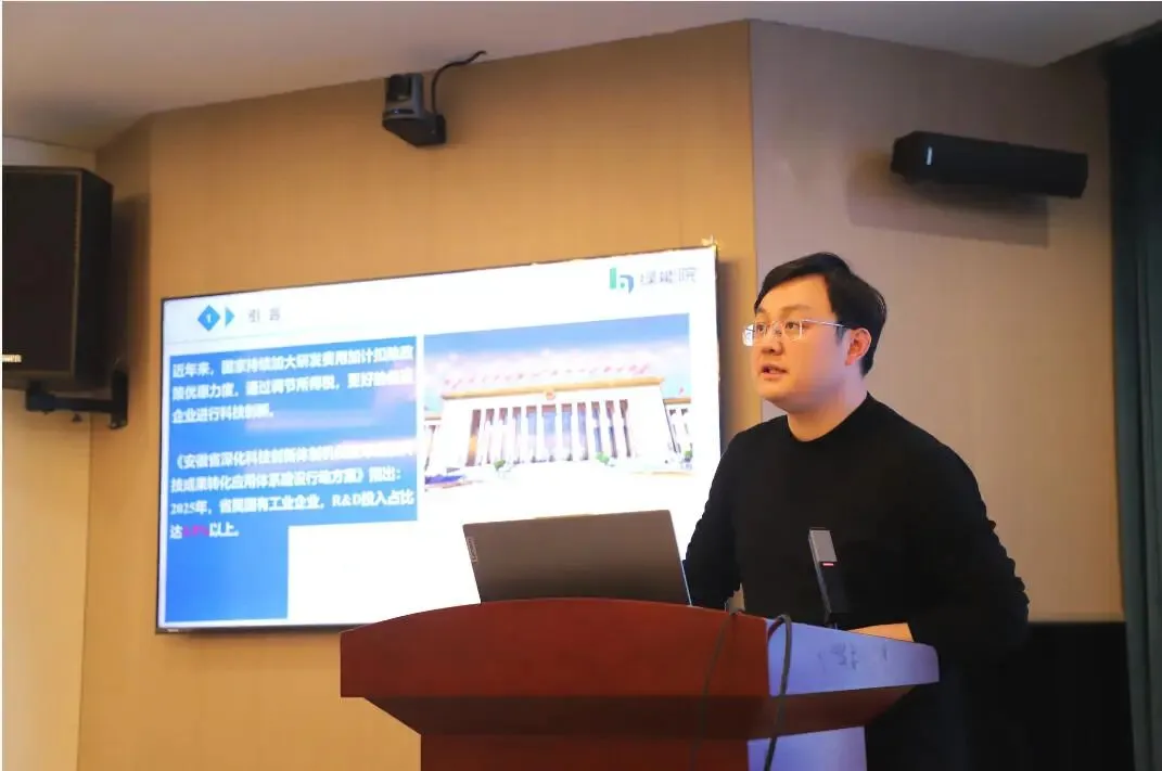 安徽绿能技术研究院有限公司执行会长卞国琛就企业研发创新体系标准化服务作详细介绍,分享推动创新资源整合、提升企业研发效率的实践经验。