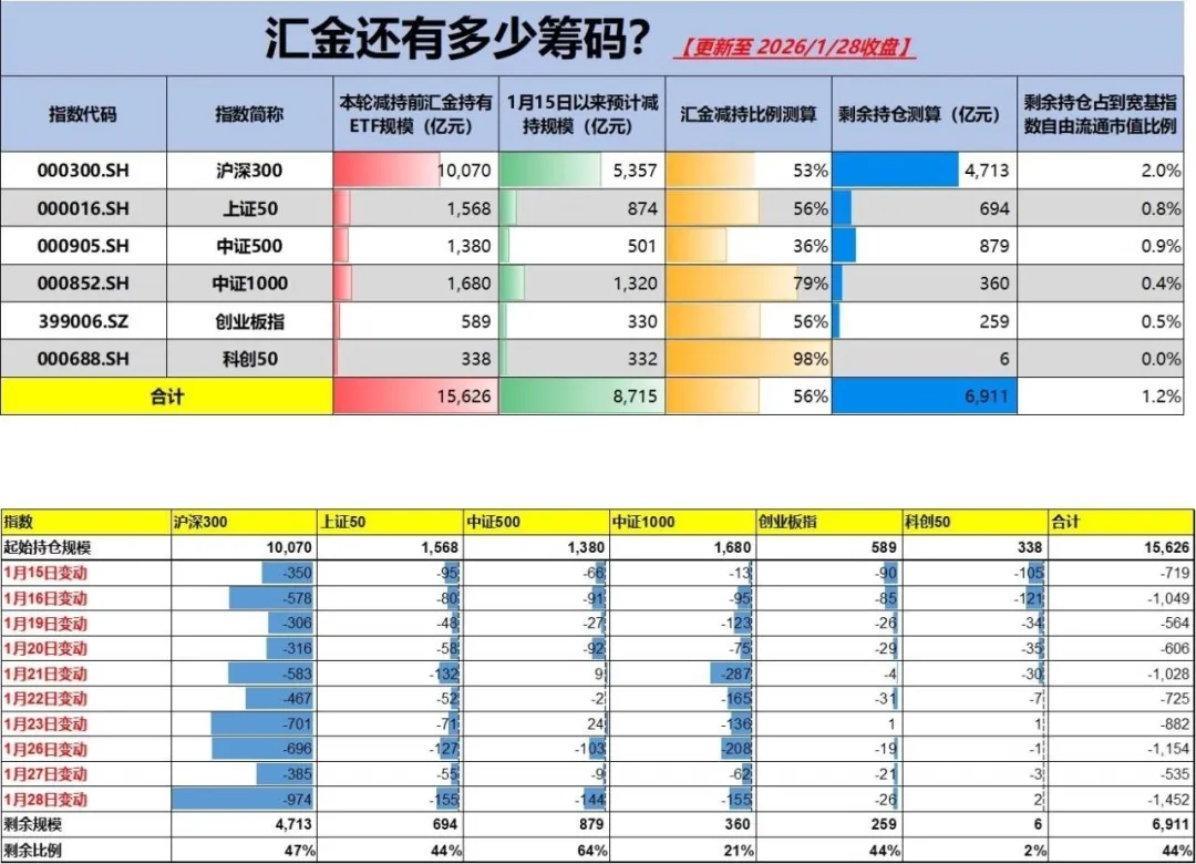 HJ持仓的部分ETF份额见上图,过去三周总份额分别下降14%、22%、25%,截至周五,回到了2024年1月的水平。