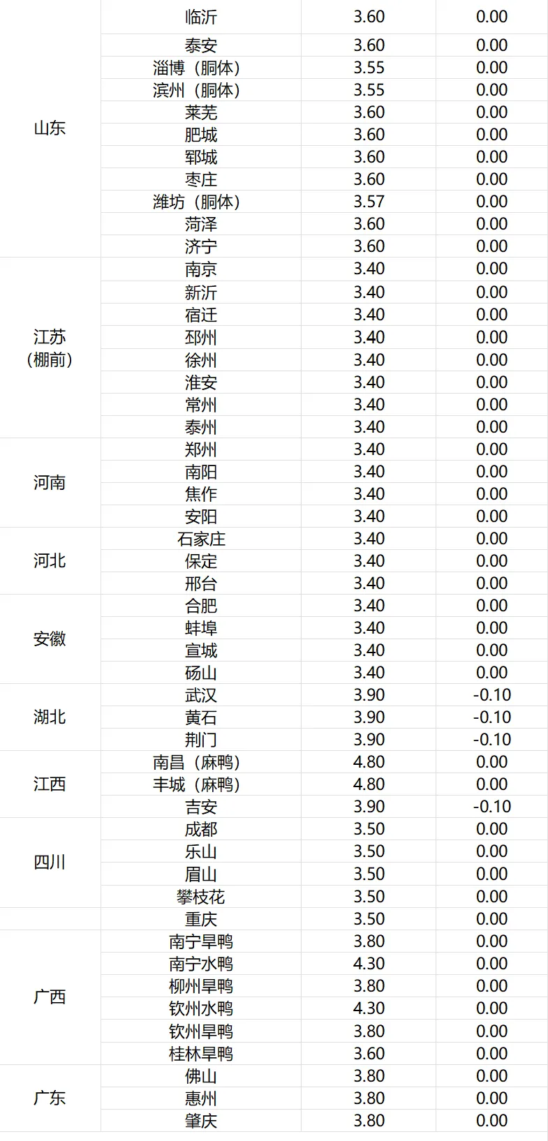 1、明日鸭苗(单位:元/羽)