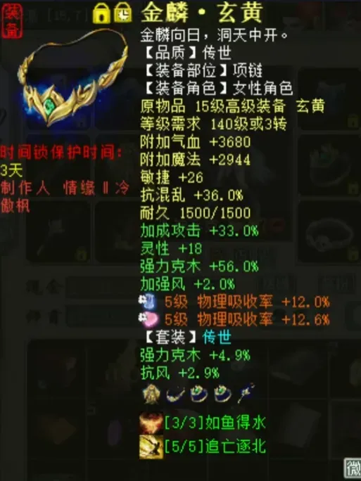 拆解此条项链的属性构成:强克木属性突破60点阈值,叠加33%攻击加成词条,同时附带敏捷加成与抗混属性,完美契合大力魔“破物理输出+基础抗性+出手优先级”的三维核心诉求。要知晓,同档位强克水、强克火属性项链,受主流克系溢价影响,市场成交价普遍达到克木装备的3-5倍;而克木作为典型的冷门强克分支,在提克完成的战斗环境中,实际输出效能与主流克系的差值不足5%,这种“低投入高回报”的属性词条组合,无疑是五开搬砖群体的最优装备选择。