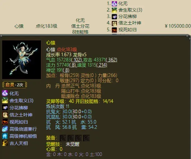 值得关注的是,高端心猿市场已呈现显著的两极分化态势:携带终极技能的心猿成交价已突破10万元关口,但曾登顶20万元天价的化无体系心猿,当前挂价10万元仍无人接盘。其核心症结在于一念圣猿体系的冲击——心猿达成成圣条件蜕变为一念圣猿后,将丧失原有的忽视物理几率与忽视物理程度核心加成,导致化无心猿与终极心猿在圣猿养成需求面前的差异化大幅缩减;叠加全服终极技能需求已进入饱和阶段,原有高端召唤兽接盘群体规模大幅稀释,最终引发高端心猿价格持续走低。这种“低端刚需群体支撑价格稳定、高端增值泡沫破裂”的市场格局,精准映射出五开搬砖群体主导的实用主义游戏消费逻辑。