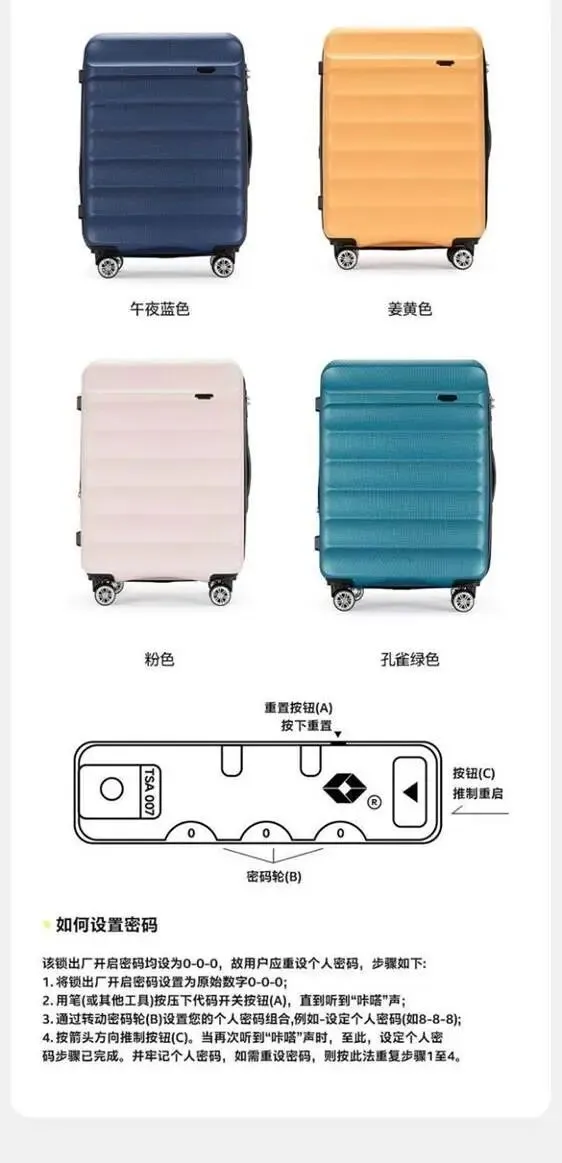 ✅轻音万向轮+TSA海关锁,出游安全顺滑。