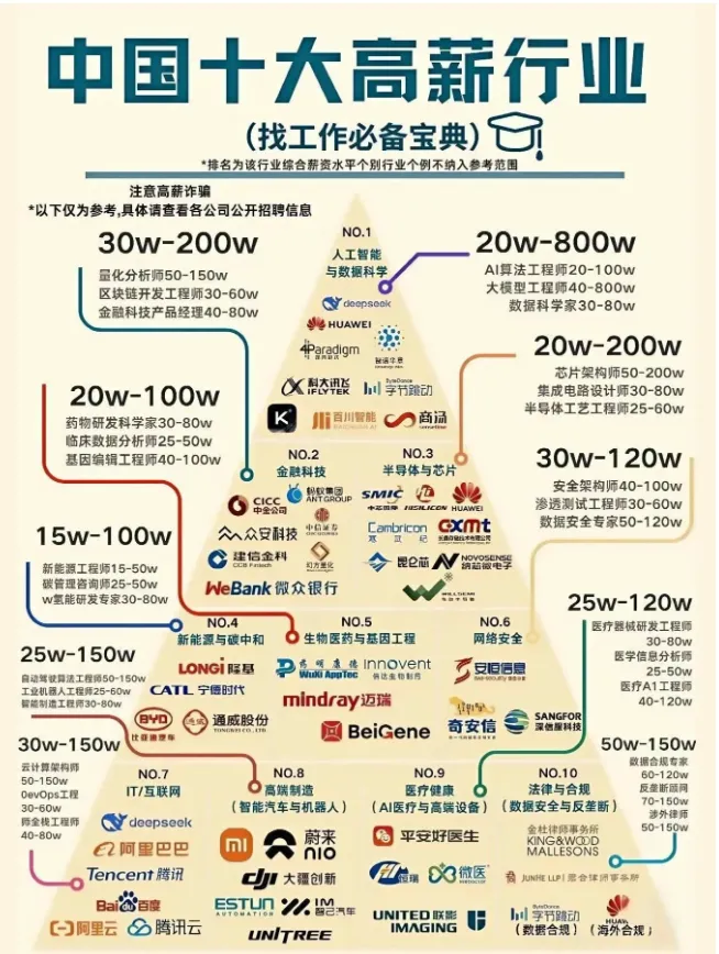 >中国十大高薪行业