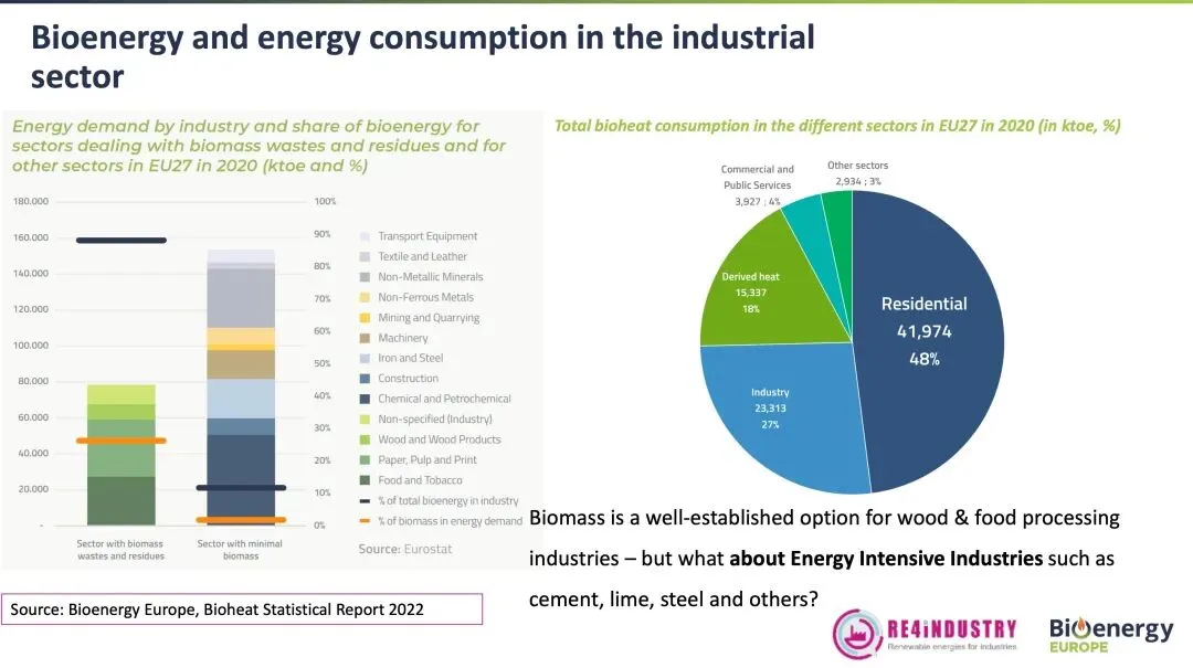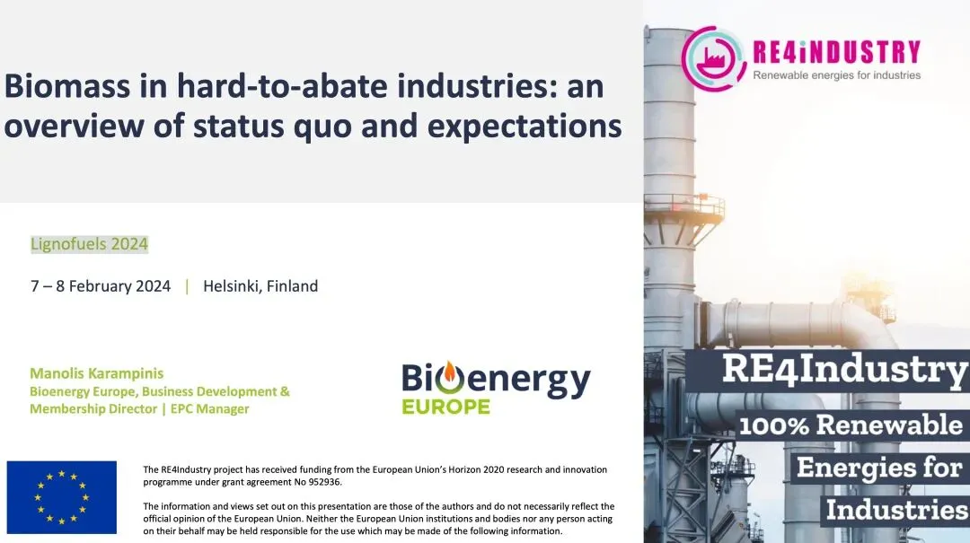 这一页主要说明:演讲主题是“生物质在难减排行业中的现状与预期”,并且材料与欧盟H2020项目(RE4Industry)有关。对我们写公众号而言,这意味着它的内容更偏“真实场景与工程路线”,适合作为国内读者理解欧洲工业脱碳组合拳的一扇窗口。