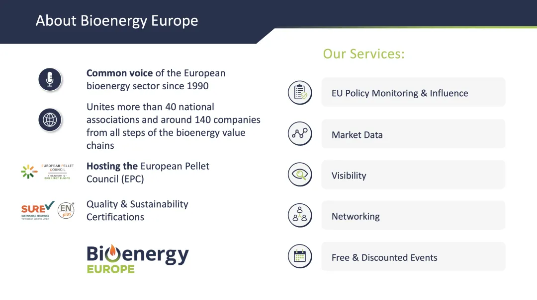 Bioenergy Europe 自1990年以来长期代表欧洲生物能源行业声音,联合了40多个国家协会与大量企业,工作重心包括:
