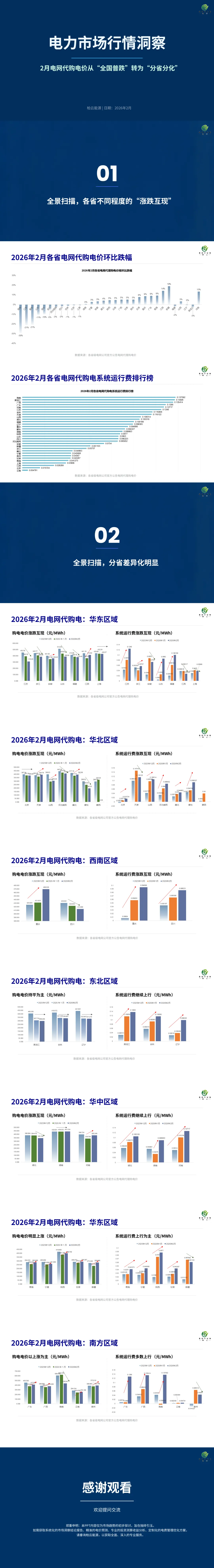 >柏云电力市场行情洞察 I 2026年2月电网代购电价从“全国普跌”转为“分省分化”