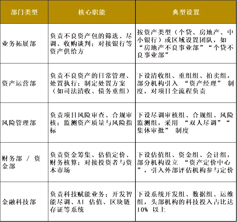 - 资产类型细分如专注于房地产、个贷、中小银行等特定类型的不良资产;