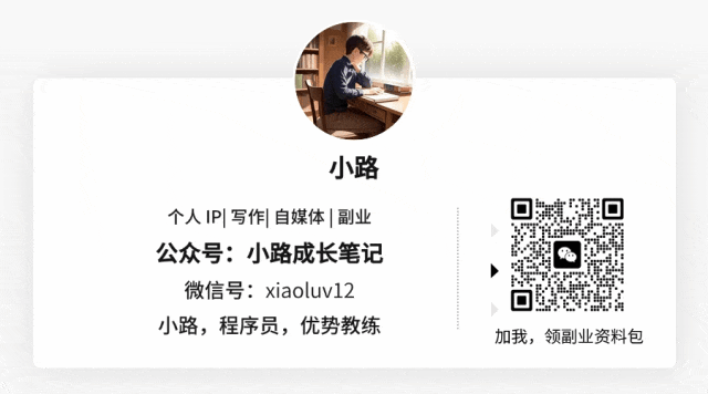 扫码加小路,送你「小路赚钱心法」和副业3年的所有资料包。送见面礼,备注「公众号」