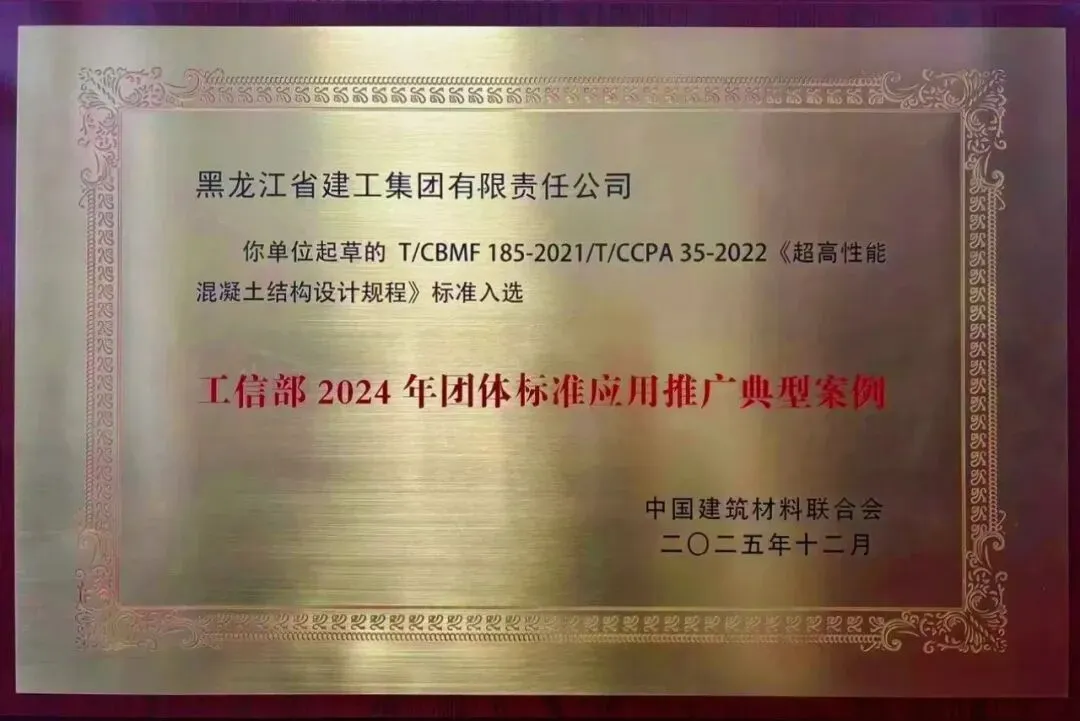 黑龙江省建工集团始终将技术创新作为驱动企业高质量发展的核心引擎。长期以来,集团坚持以重大工程项目为技术攻关“试验场”,以技术突破为发展“动力源”,不仅积极深度参与行业各类技术标准的编制工作,更注重将标准中的技术要求与自身项目实践经验深度融合。此次参编的UHPC团体标准获得国家级认可,既是国家层面对集团在新技术应用领域技术实力与实践成果的高度肯定,更是对集团勇担行业技术革新使命的有力褒奖。