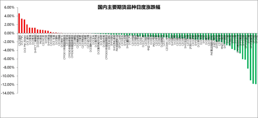 截至2026年1月30日15:00收盘,国内商品期货多数收跌,碳酸锂主力合约跌停,钯、铂跌超11%,沪锡跌超8%,沪银、多晶硅跌超6%,沪金、铝合金跌超4%,沪镍、沪铝跌超3%。PVC涨超3%,焦煤、焦炭涨超1%。