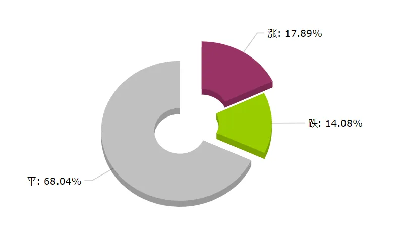 环比下降的商品共有48种,跌幅在5%以上的商品共16种,占该板块被监测商品数的4.7%;跌幅前3的产品分别为苯甲酸钠(-13.39%)、氯代碳酸乙烯酯(-11.68%)、聚合氯化铝铁(-10.53%)。