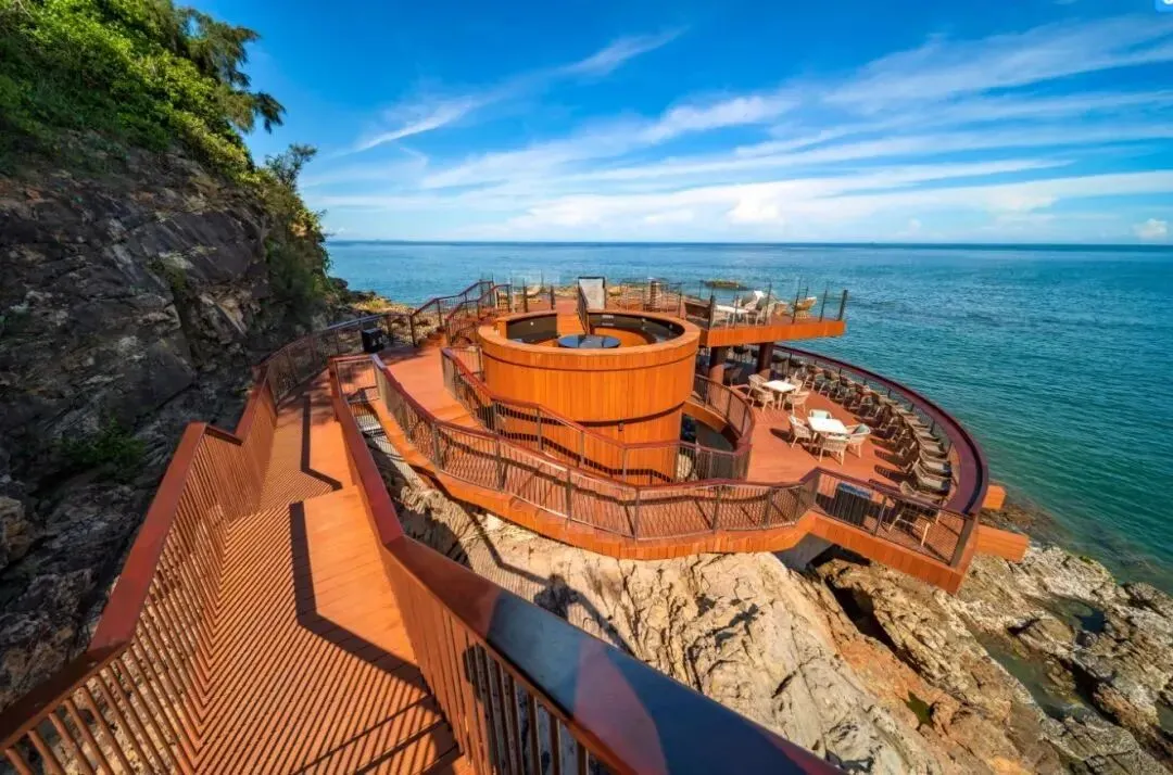 放置有舒适的沙发和沙滩椅,可闲坐看海