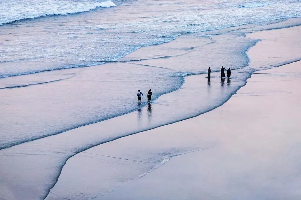 牵手漫步在海边,听着潮涨潮落的海浪声