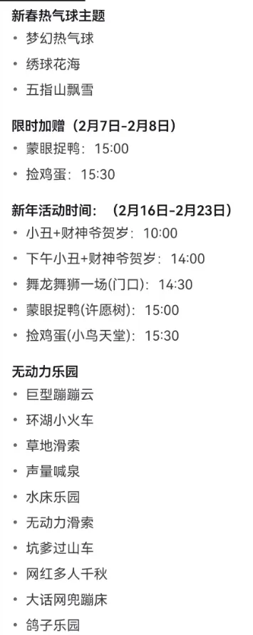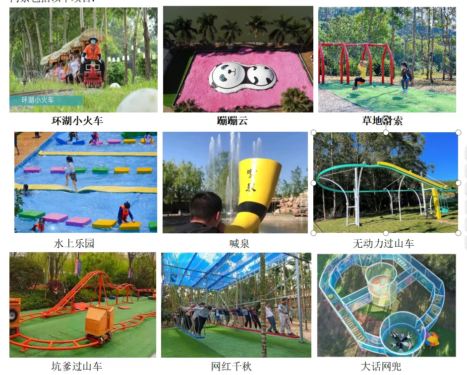 门票含:超长环湖小火车、蹦蹦云、草坪滑索、儿童水上乐园(冬季会关闭)、网红喊泉、无动力过山车、坑爹过山车、网红秋千、大话网兜