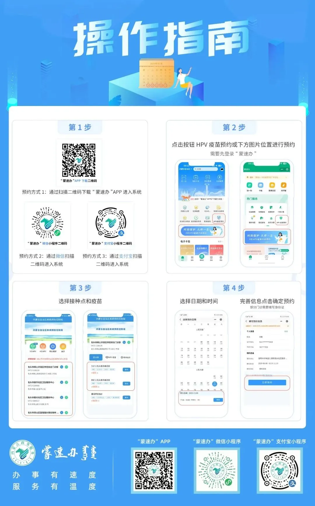 更多HPV疫苗预约信息,请持续关注“蒙速办”公众号、