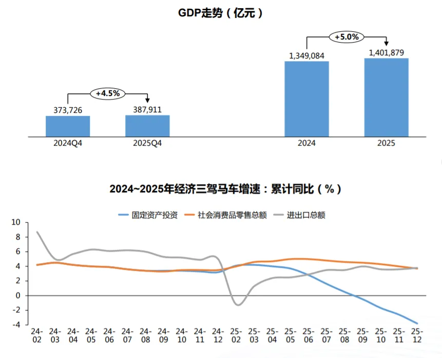 GDP:全年增长 5.0%,达 140.19 万亿元。经济顶住压力实现预期目标,展现强大韧性。