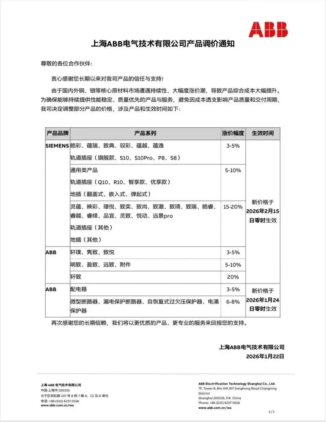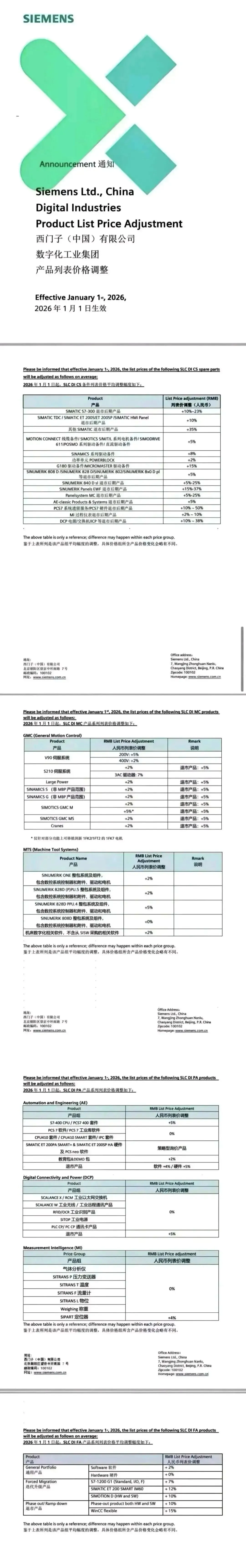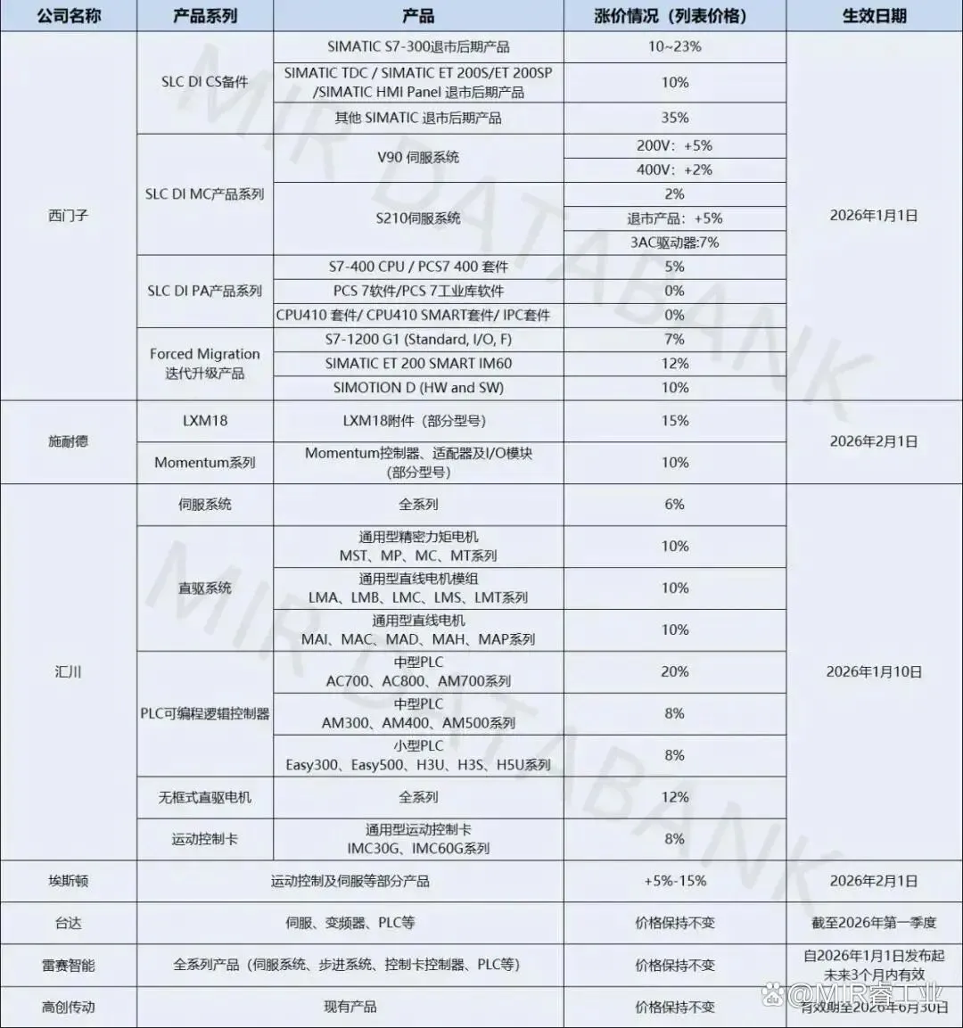 - 涨幅多为公开通知或经销商反馈数据,部分定制化 / 稀缺品类涨幅更高(如西门子部分停产系列达 53%)。