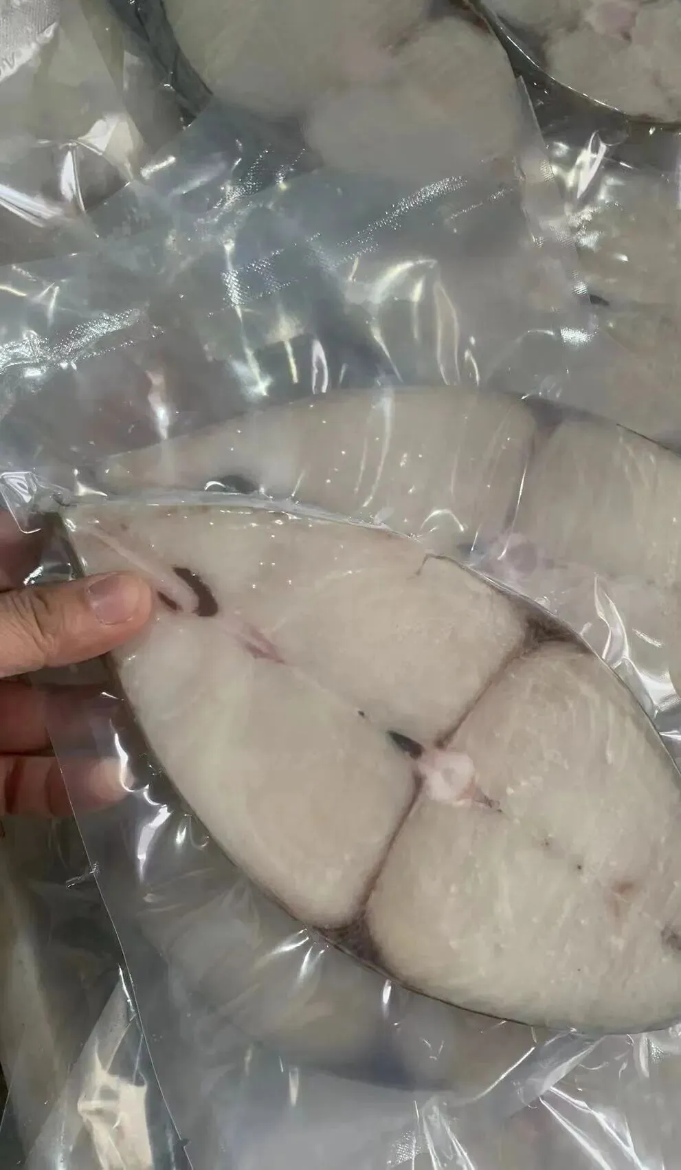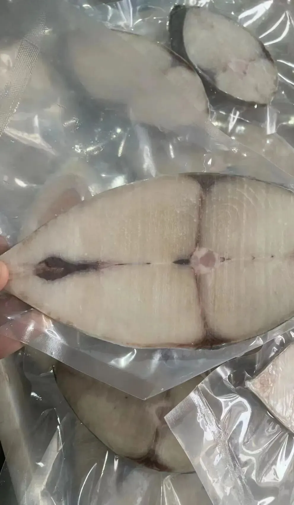 马鲛鱼上岸后,我们要迅速冷冻,冻硬以后再切片,切片后抽真空。这个过程排除了所有空气,有效防止氧化和细菌滋生,锁住初的新鲜。