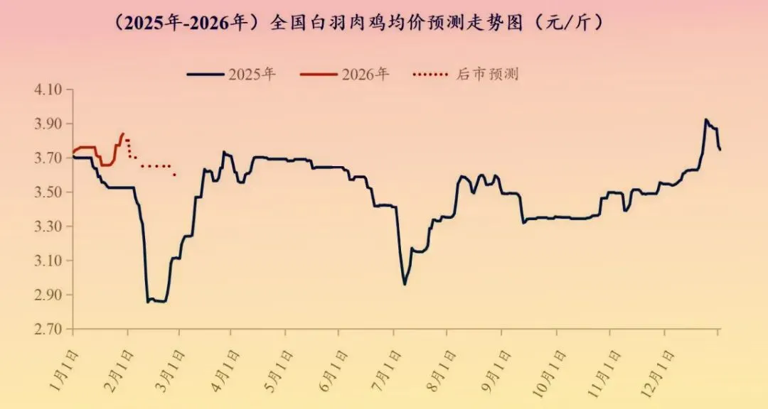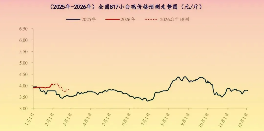 本月毛鸡价格呈震荡后偏强走势,均价环比微涨。本月毛鸡理论供应量增多,中上旬市场交投节奏变化不大,毛鸡价格多在3.80-3.90元/斤之间小幅震荡,市场未形成明显的涨跌趋势,进入下旬市场供应压力不大,企业采购积极性有所提升,叠加替代品价格走强,间接利多小白鸡市场,需求面拉动下毛鸡价格走强。
