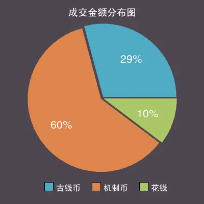 其中 100-860 元为低档花钱,总成交量前10名的花钱品种依次为:十二生肖背八卦花钱、长命富贵、十二生肖花钱、八卦、福寿挂花、民国风花雪月花钱、镂空花卉、驱邪降福背五毒花钱、民国太平通宝花钱、五子登科花钱;