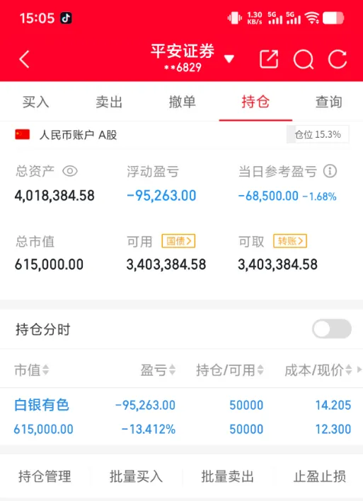 还在白银有色没出来呢,好在仓位不重,这种极端行情真的是难见,主要跟外围的金银价格暴跌还是有着巨大的关系,真被我说中了,只要不是暴跌的话那么国内A股的金属票绝对是没问题的,然后,随着国际价格的暴跌,恐慌情绪带崩所有金属票,这波基本所有的龙头选手都被焊在白银了,但是做龙头的话这种情况是肯定会碰到的,只是说很少,但并不是说能完全避免吃地板,其实包括上周也好,这周也罢,大盘的整体行情都是很差的,每天都是几千家下跌,今天大盘不是谋队护着的话估计跌的还要更惨,关了几天小黑屋的锋龙要不是有着强势的逻辑面的话,肯定也是一字跌停了,明天看情况吧,白银应该是要开板了,看有没有其他的主力去拉升,不行的话就直接割肉走人了。股市天天开门,吃了我的迟早给我拿回来!