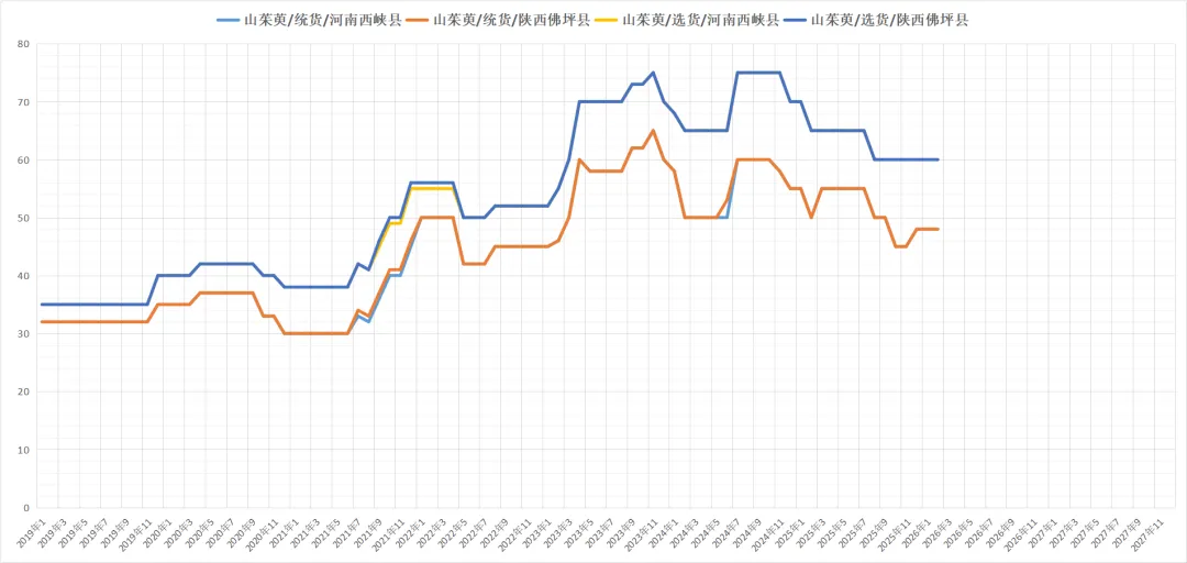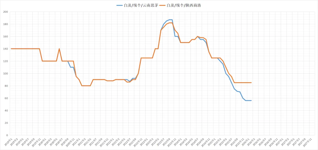 年前产新已经结束,因价位相对不高,引起不少商家关注,近期货源走动稍有放缓,现药厂货价格在40元,统货45-50元,片65-70元。
