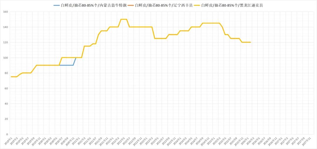 产地可供货源不丰,近期寻货商家增多,货源走动顺畅,现抽芯率85%的药厂货售价130元,抽芯率95%的140元左右。