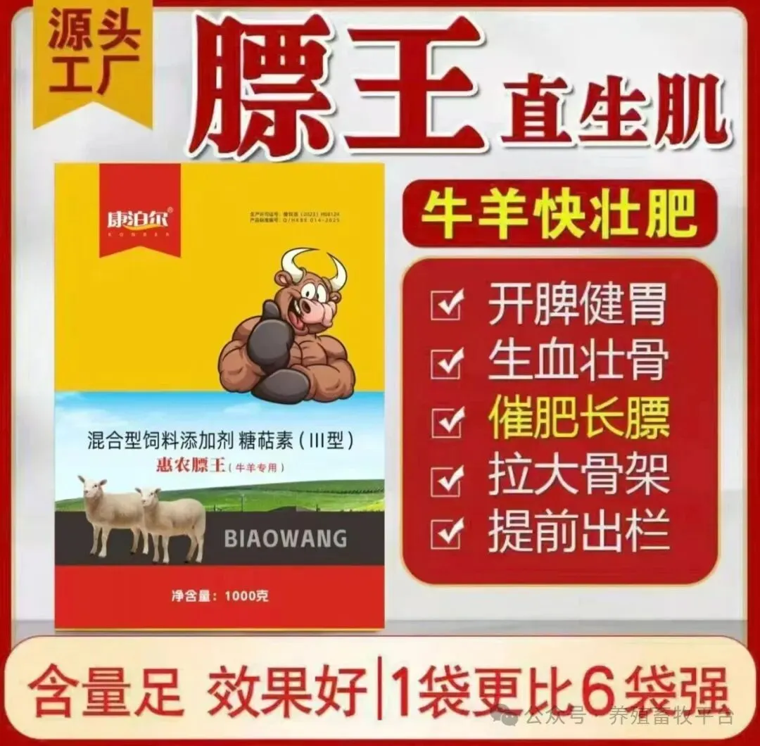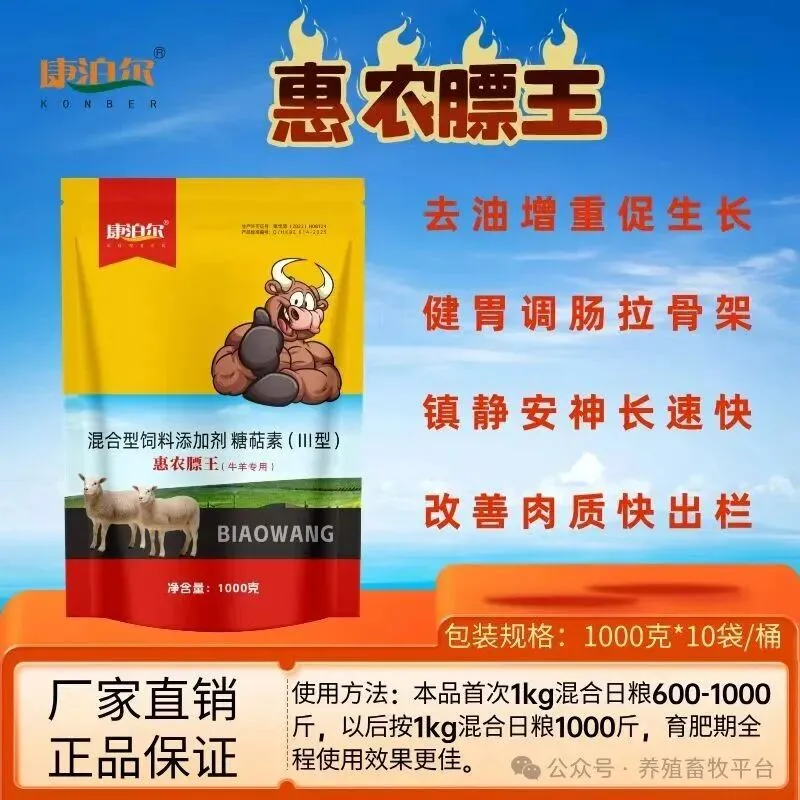惠农膘王,是公司新研发牛羊催肥精品,在二十年催肥产品基础上,从产品丰尤壮→克能特安→惠农膘王,主要适用牛羊等反刍类动物。无论是小型家庭养殖还是大型养殖企业,都能通过本产品提高牛羊育肥效果,缩短养殖周期,增加经济效益!