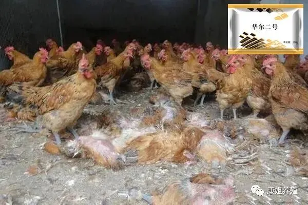 | 4、肉鸡在30天左右出现群精神沉郁、采食量下降、零星死亡增加、神经症状,应用华尔一号3-4天可迅速改善症状,可安全出栏。 |