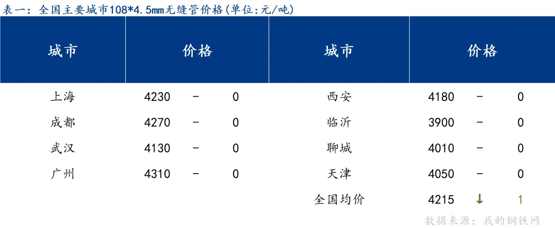 市场总结:今日国内无缝管市场价格整体持稳,108*4.5mm无缝管均价报4215元/吨,较上一交易日下跌1元/吨。今日黑色系期货大幅走弱,管坯价格弱势下调,管厂出厂暂稳;年关将近,管厂接单情况一般,加上北方地区环保政策频发,生产节奏受限,供应端有所收窄;需求继续收缩,多数下游逐步停工。预计明日国内无缝管价格或平稳运行。