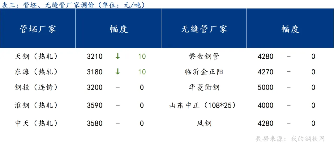 2月2日更:山东热轧管坯厂提价降10,Φ50-130钢厂直发含税:东海3180,钢投特钢3260,天钢3210,潍钢3260。(元/吨)