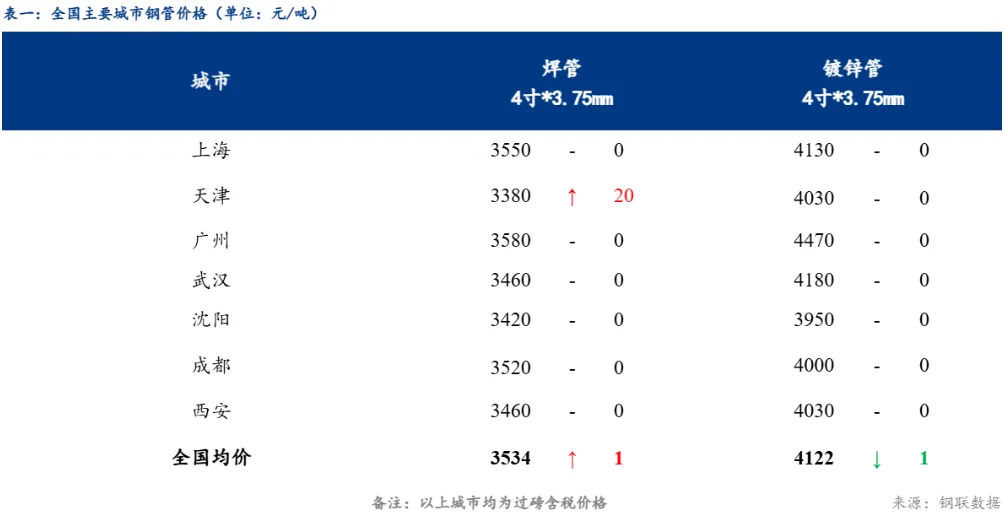 市场总结:今日全国焊管市场价格涨跌互现,窄幅调整,焊管均价上涨1元/吨,镀锌管均价下跌1元/吨,市场贸易商调价意愿较低,零星出货。贸易商库内资源定价为主,管厂灵活排产,焊管产量继续下降,原料成本支撑力度尚可,需求淡季成材价格多持稳观望,焊管市场价格表现来看呈现窄幅调整趋势。综上,预计明日全国多数市场焊管价格或持稳运行。