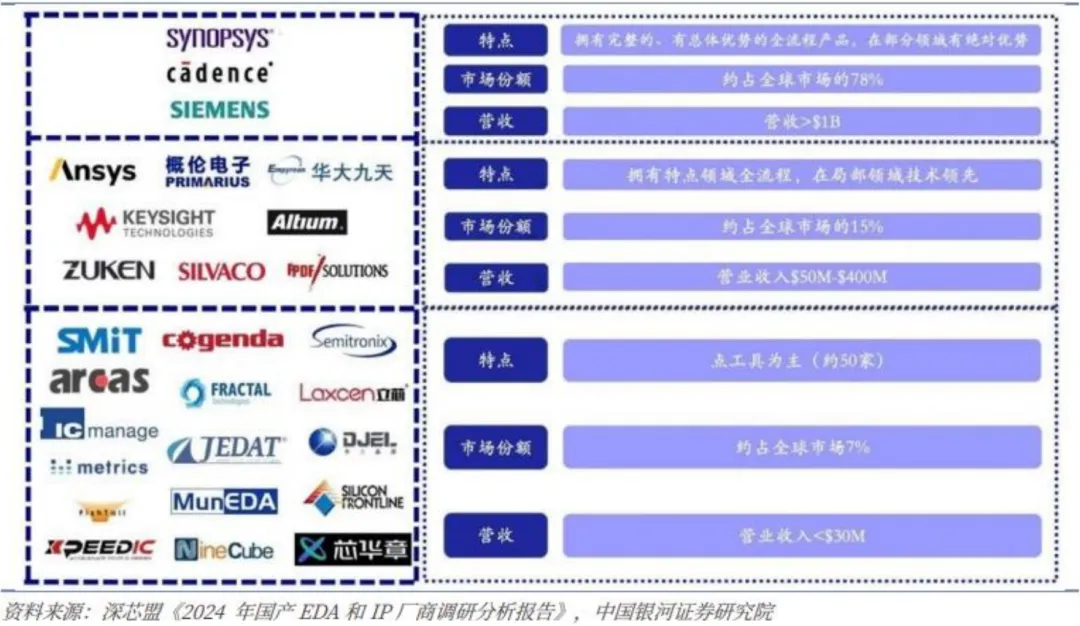 EDA工具按应用环节可分为设计类、制造类及其他类型,覆盖从前端设计到后端实现的全流程: