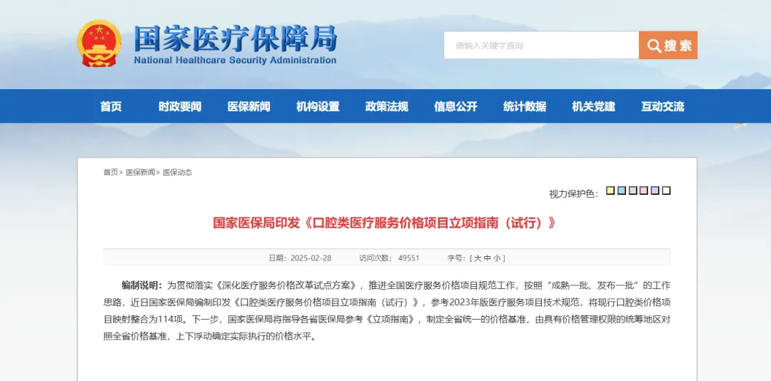 一直到了今年的2月,国家医保局印发《口腔类医疗服务价格项目立项指南(试行)》,明确了129项口腔收费项目,于是从那之后,一切终于有了改变。