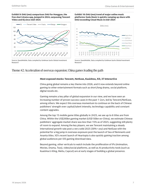 中国娱乐公司全球化是2026年的关键主题,范围已从在线游戏拓展至短剧/长剧、社交平台、数字小说等领域。