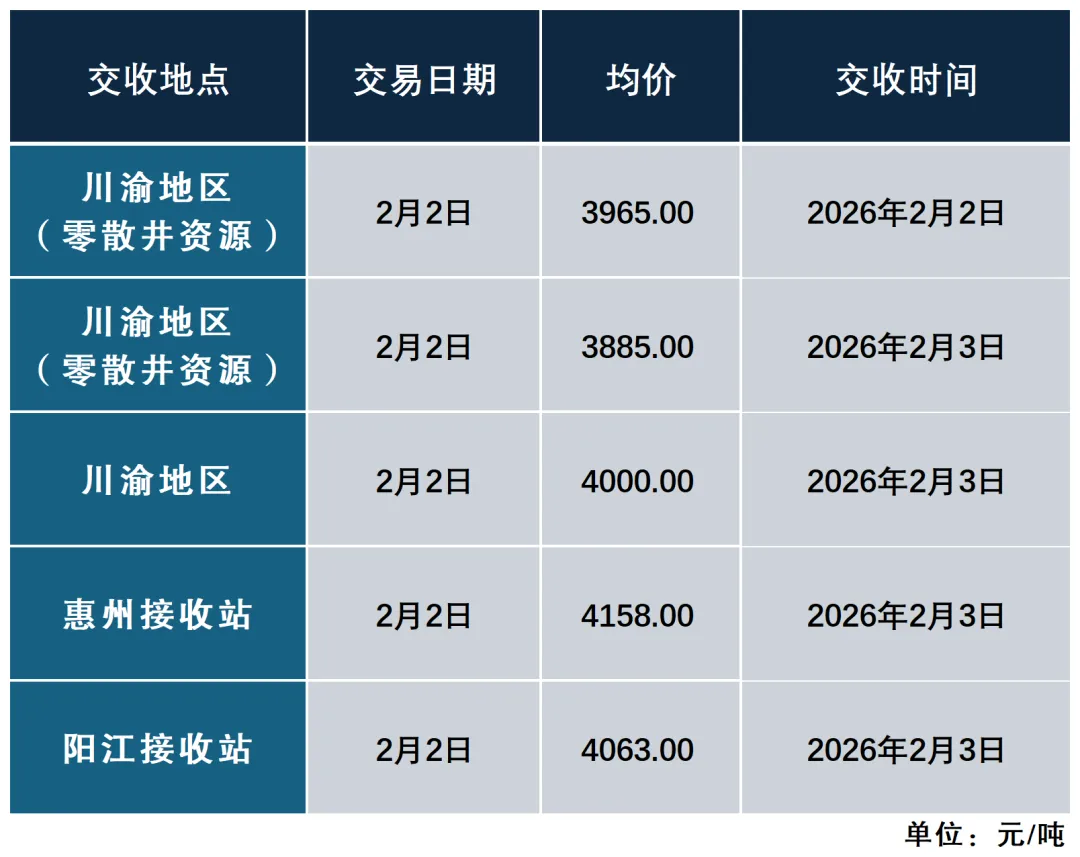 >2026年2月2日LNG交易价格日报