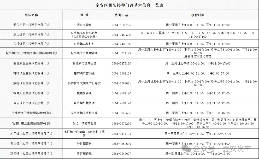 2.提前咨询:具体接种事项可咨询金安区预防接种门诊。