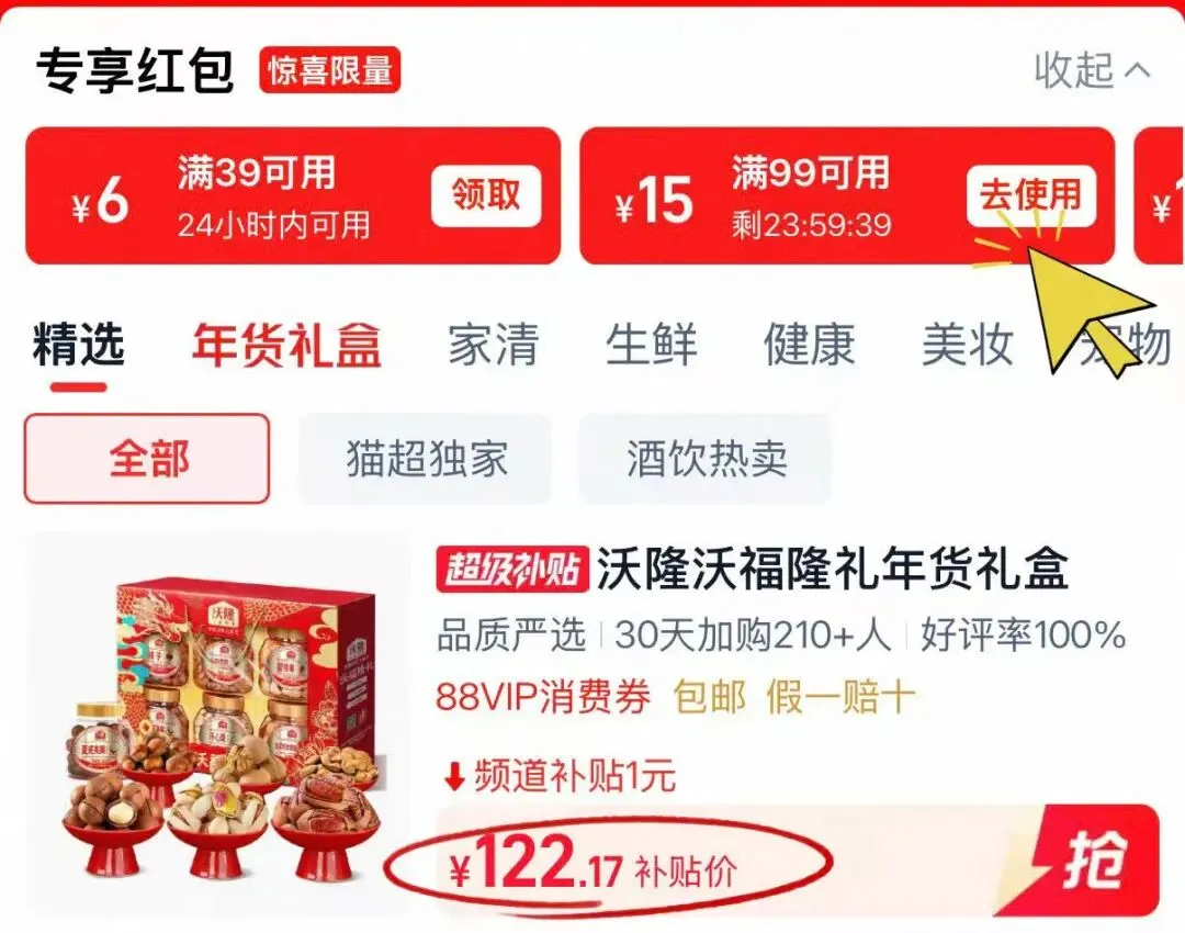 88vip领礼金!详情页到超级补贴页面!再领99-15券!到手💰124亓!