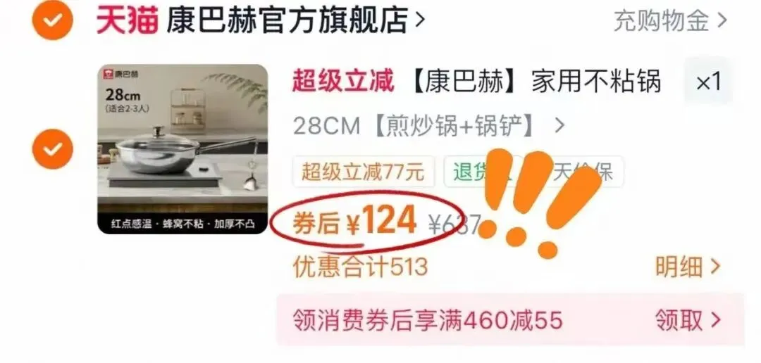 康巴赫 304不粘锅,到手💰124亓起!还能凑消费券更低!28cm~32cm可选!