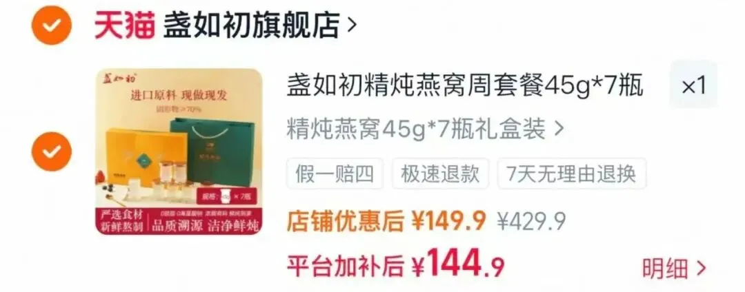 盏如初 精炖燕窝45g*7瓶礼盒装,只要144.9亓!