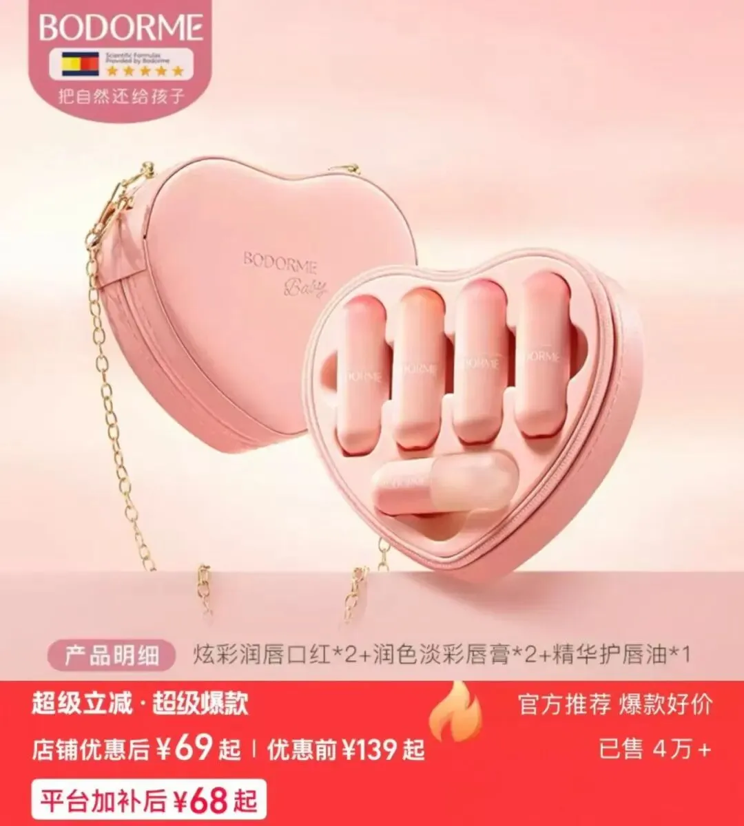 送给小孩姐的新年礼物!内含口红2支+唇膏2支+护唇油1支✅天然西蜂蜡+双重植物油脂,显色的同时像涂润唇膏一样滋润!妆护二合一给宝贝用超安心!一次拥有包包+口红!快给爱美的宝贝安排~