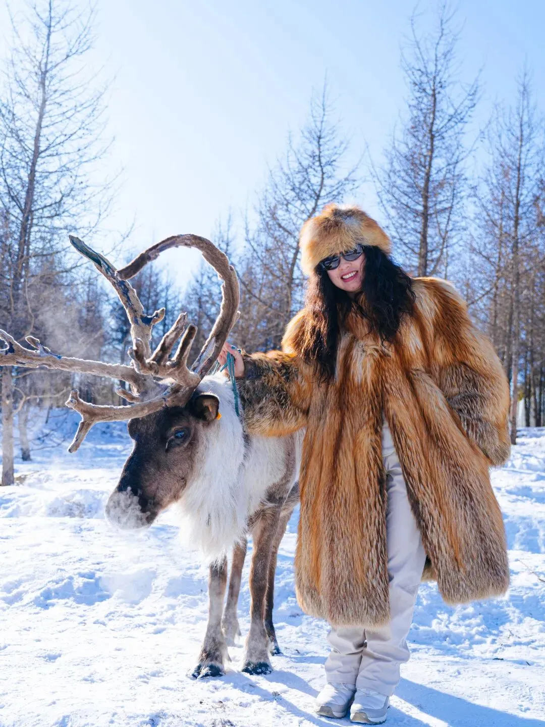 鄂温克族的驯鹿从白桦林中探出头,毛茸茸的角挂着冰晶,鹿铃在寂静的雪林里叮咚作响。亲手喂食这些温顺的雪原精灵,触摸超大号的鹿角。