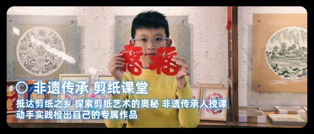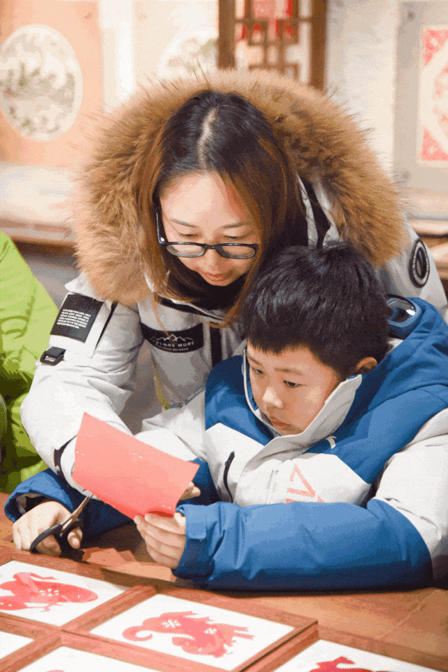 学习体验剪纸活动,非遗老师示范剪纸的基本技巧,如折叠、裁剪、镂空等。让孩子亲自动手拿起剪刀和彩纸开始尝试。剪出自己的专属作品,深刻感受到剪纸艺术的魅力。