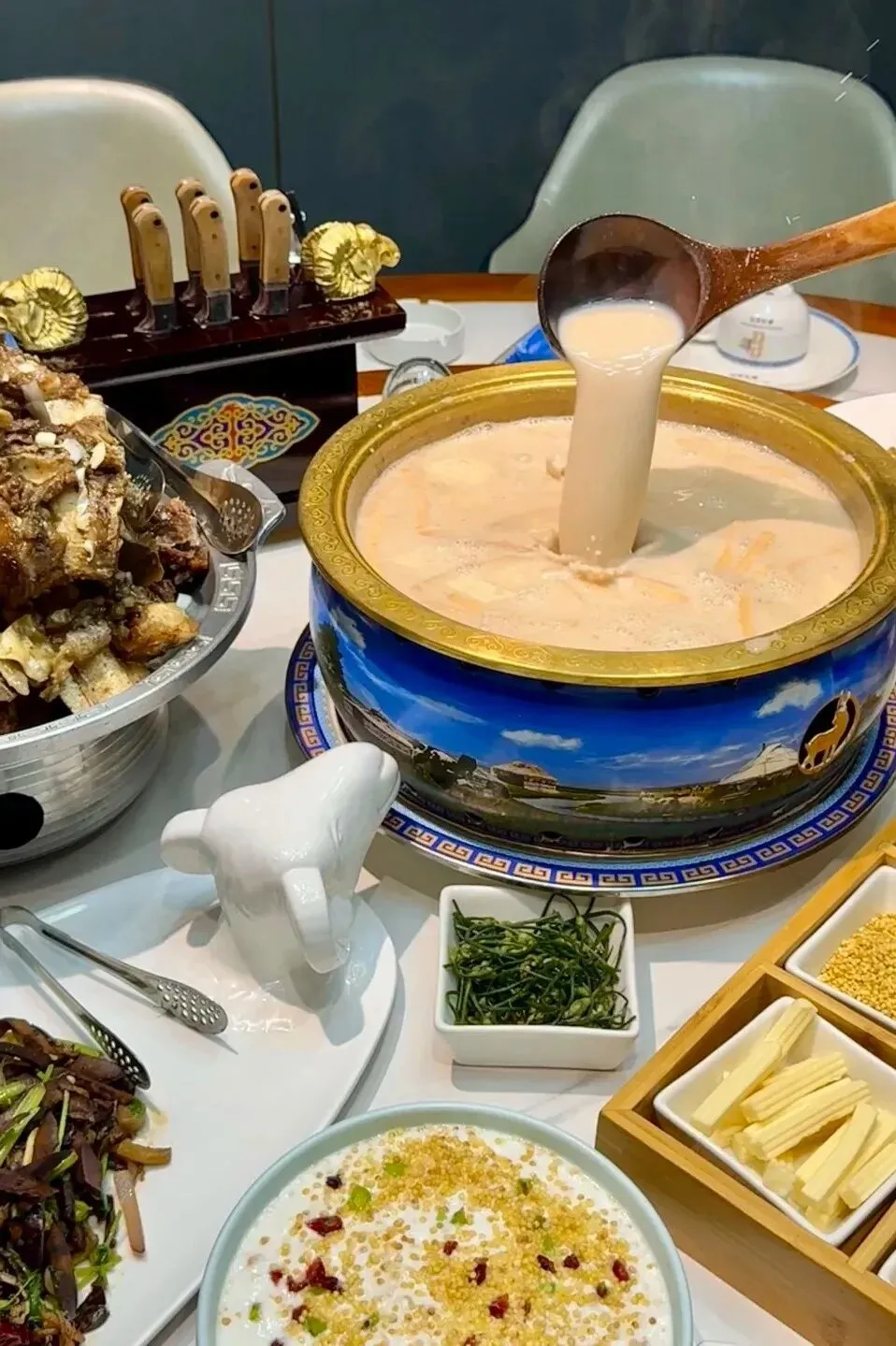 鲜美十足的手把肉、浓郁咸香的蒙古奶茶、各色奶味纯正的奶制品,采用当地食材烹饪,一尝难忘的美食中藏着浓浓的游牧民族风情。