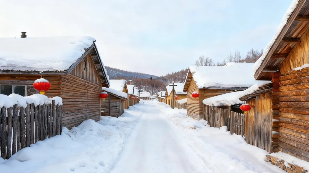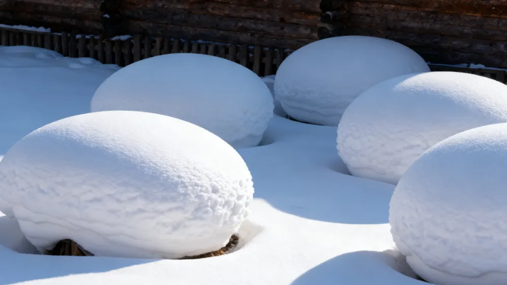 走进炊烟袅袅的雪村,原汁原味的木屋覆着厚厚的雪被,脚下,一个个“雪馒头”圆润可爱,像大地生长的白色蘑菇,静静装点着这片童话秘境。