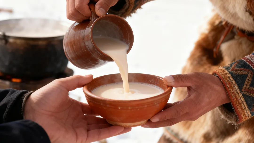 热情的牧民老乡已备好滚烫的咸奶茶。在零下20度的严寒中,捧一碗下肚,暖意从掌心直抵心底。